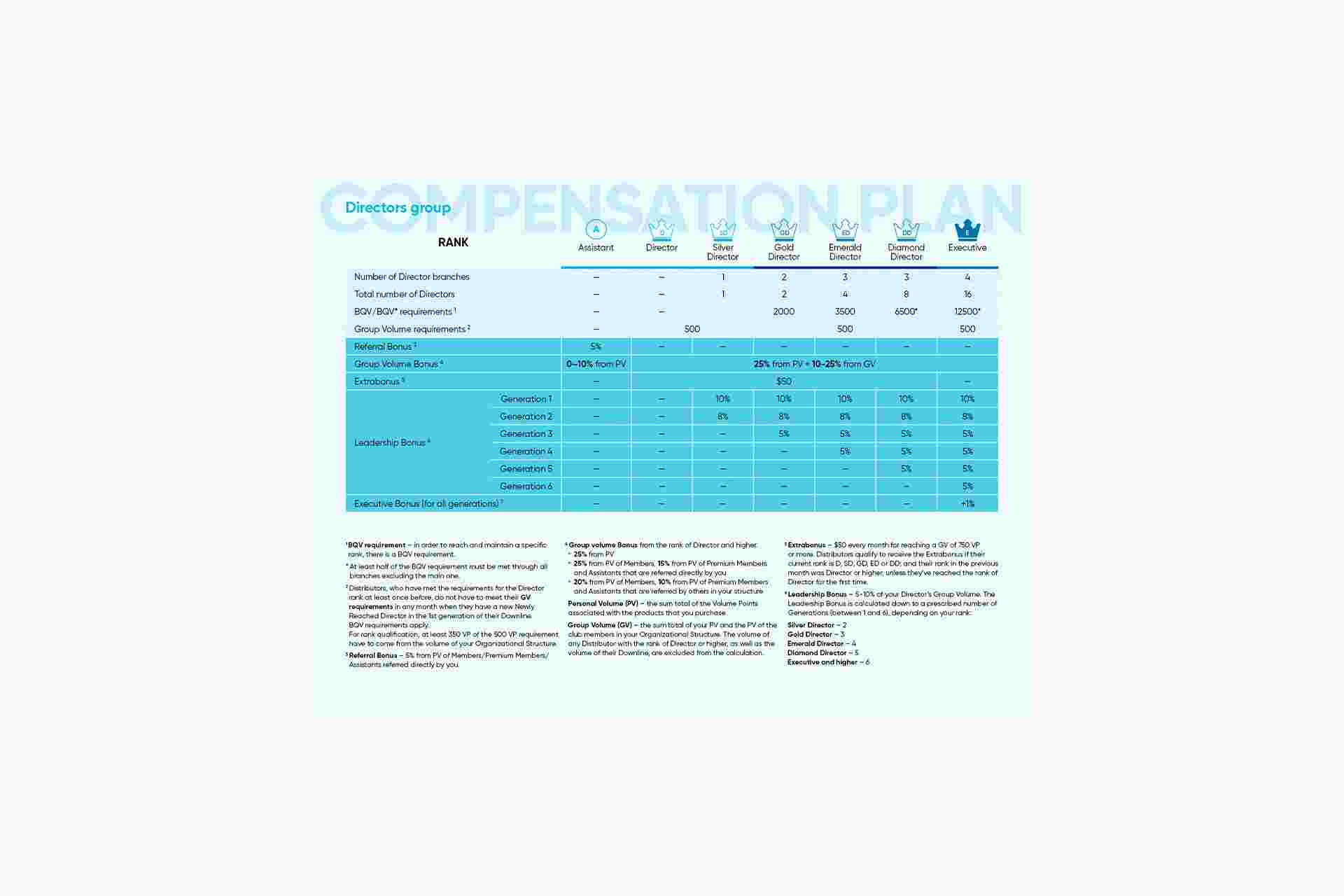Coral Club Compensation Plan 2023: Extrabonus for the Directors group and increased bonus payouts to the distributor network.